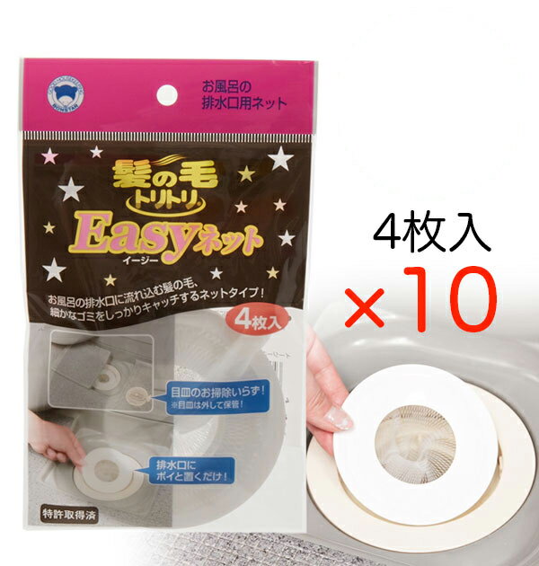 排水ネット 髪の毛トリトリ Easyネット 排水口 キャッチ お風呂 排水溝 送料無料 使い捨て ワンタッチ 簡単 イージーネット 髪の毛 ネット ヘアストッパー 掃除 置くだけ 髪の毛集め 4枚入り 10個セット バス用品 お風呂 排水溝 ネットマニアック情報特集